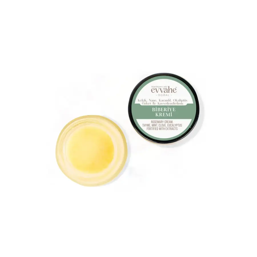 Evvahe Doğal Biberiye Kremi, içeriğindeki çok çeşitli bitkisel kaynaklardan elde edilmiş olan tamamen doğal ve en kaliteli yağlardan size özel olarak formüle edilmiştir.