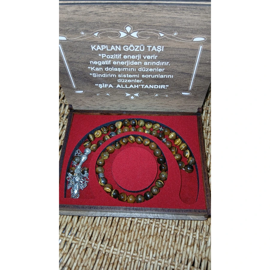 Kaplangözü Tesbih Seti, özel ahşap kutuda sunulan doğal taşlı bir tesbih setidir. Hem manevi hem de estetik değeri olan bu set, hediye vermek için mükemmel bir seçenek.