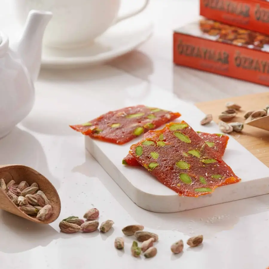 Özkaymak markasının fıstıklı cezerye ürünü. Geleneksel Türk tatlısı olan cezerye, havuç ve şeker karışımından yapılır ve fıstık ile zenginleştirilmiştir. 200 gr ambalajda sunulmaktadır.